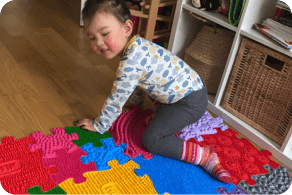 Byl krásný letní den….Náš roční syn pochodoval bosky po ostrých kamínkách, kde se ploska nohy krásně stáhla, skočil na trávu, kde se nožka příjemně roztáhla, zabalancoval na strarém pařezu a přeskočil na kámen. Tehdy vznikl ten nápad - pojďme dostat tyto outdoorové stimuly do každé domácnosti, školky nebo školy. |