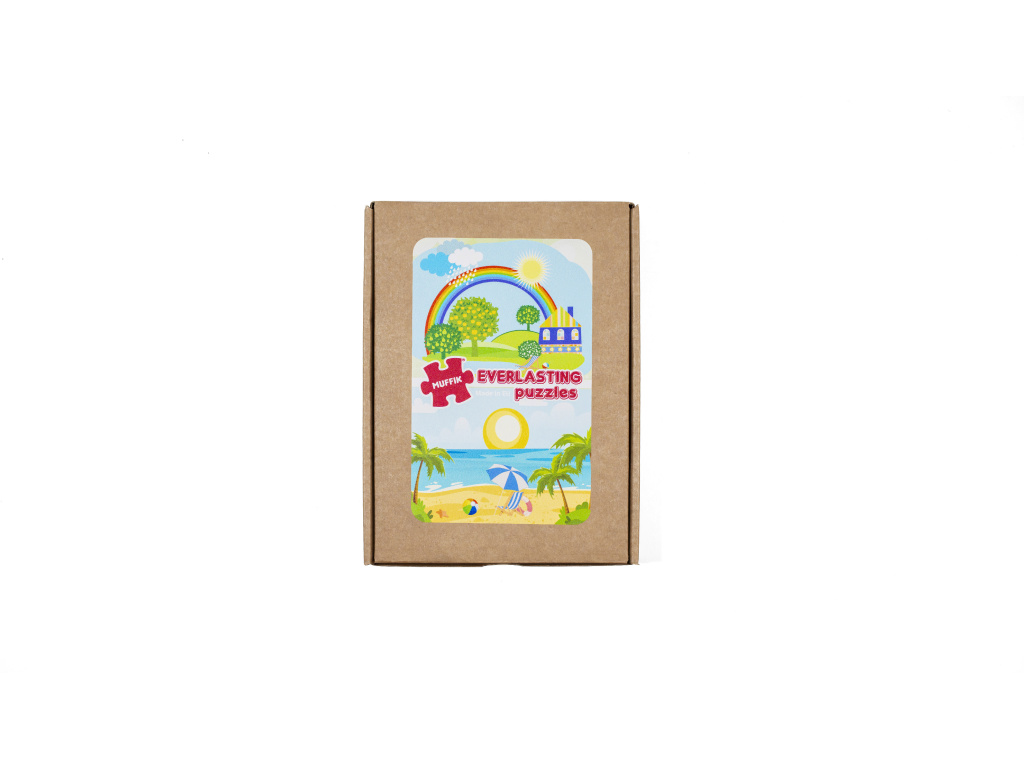 LÉTO - Set se skládá z 12 oboustranných puzzlů, které do sebe hravě zapadají a vytváří nádherný obrázek letní krajiny plné slunce a barev na jedné straně a prázdninové pláže s jemným pískem a palmami na straně druhé.