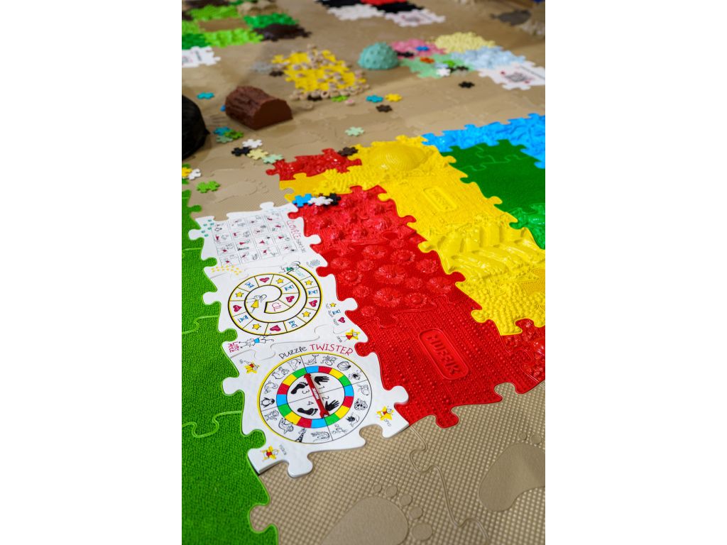 🌀 Puzzle Twister přináší zábavnou balanční výzvu. Zatočte ruletou, umístěte ruce a nohy podle barevného zadání a snažte se udržet rovnováhu co nejdéle. Barevné puzzle prvky lze libovolně přeskupovat, takže si pokaždé vytvoříte jiné herní rozložení. Každá hra je originální a přizpůsobí se prostoru i věku hráčů.