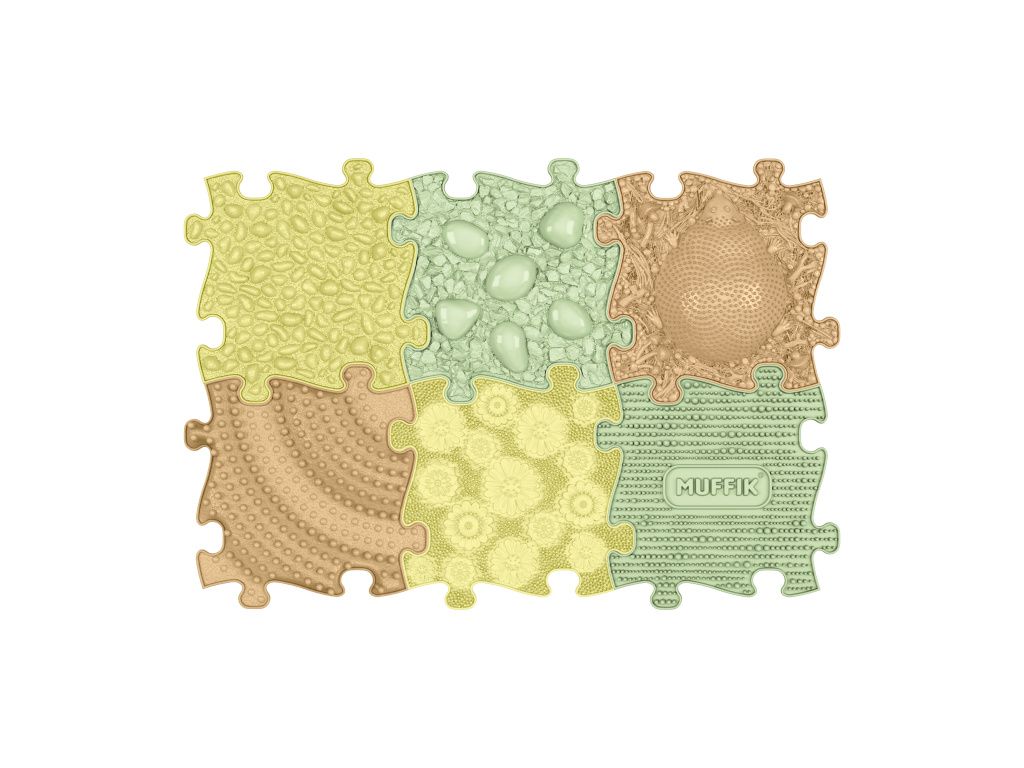 Jarní set nabízí jedinečnou kombinaci měkkých a tvrdých podložek, včetně dvou 3D typů (Ježek a Twister), které intenzivně stimulují plosky nohou a trénují rovnováhu. Jemné pastelové tóny zelené a žluté evokují první jarní trávu, rozkvetlé louky a probouzející se přírodu – a přesně tak působí i na vaše chodidla.